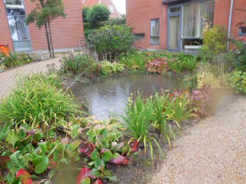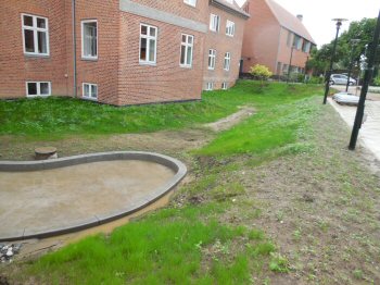 Afkobling af regnvand og nedsivning i regnbede i ældrecenter i Middelfart