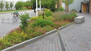 Tagnedløb ført til regnbed Nyanlagte regnbede